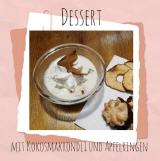 Aktuell gibt es bei uns im Dorf Märt Kokosmakröndli zu "retten" - Passend dazu haben wir einen Dessert kreiert zusammen mit Apfel-Ringen, welche auch bei uns erhältlich sind.