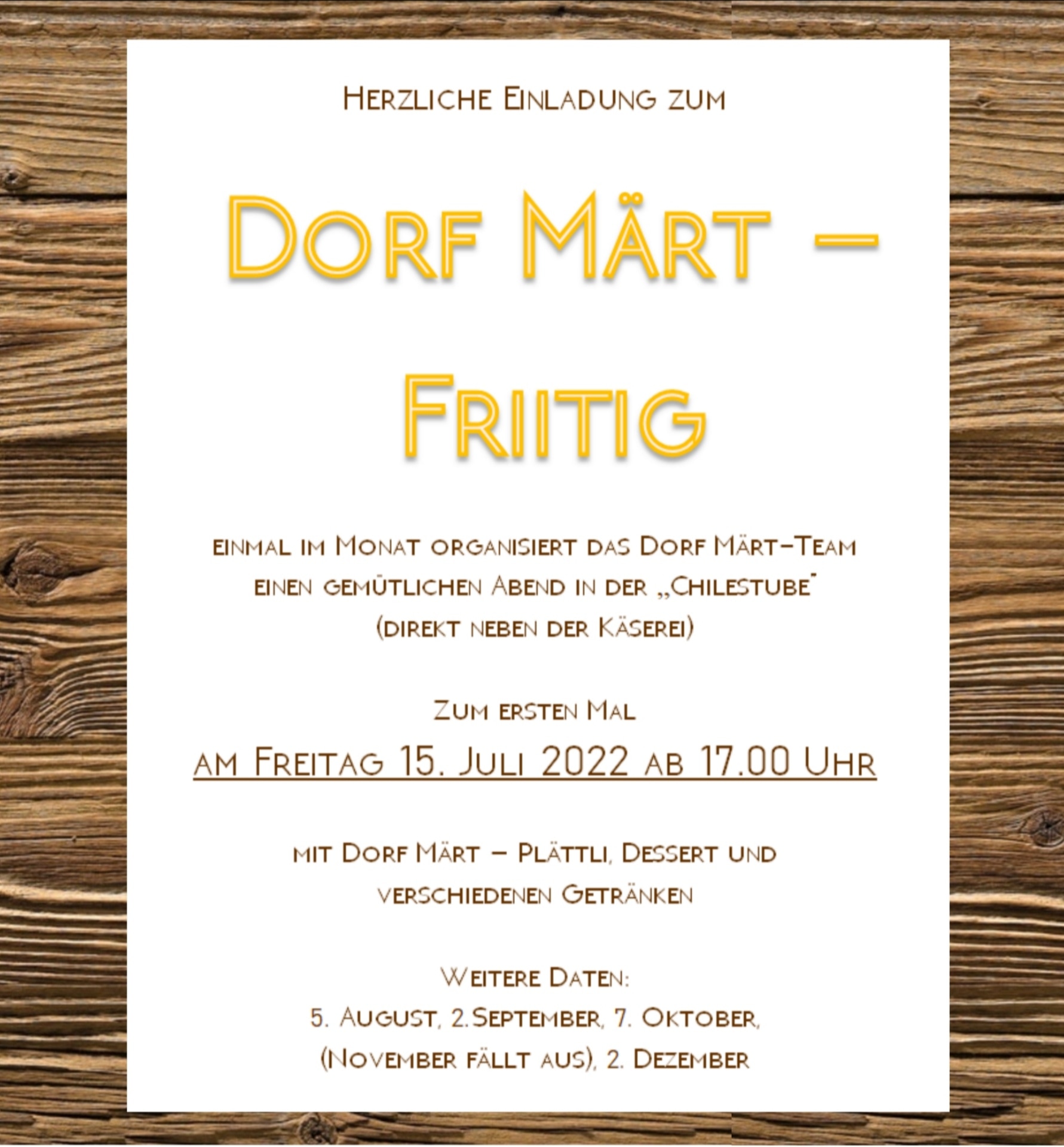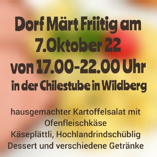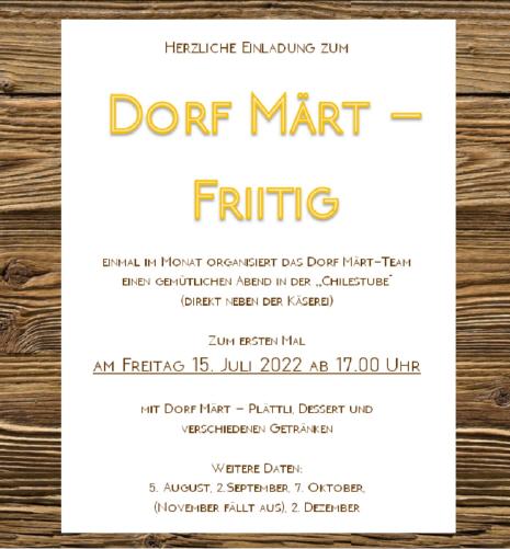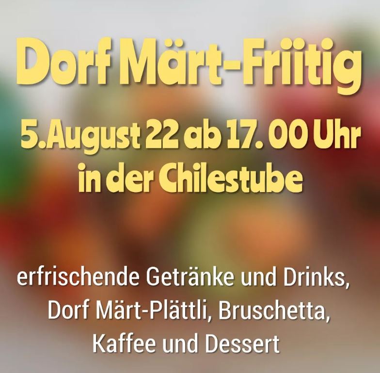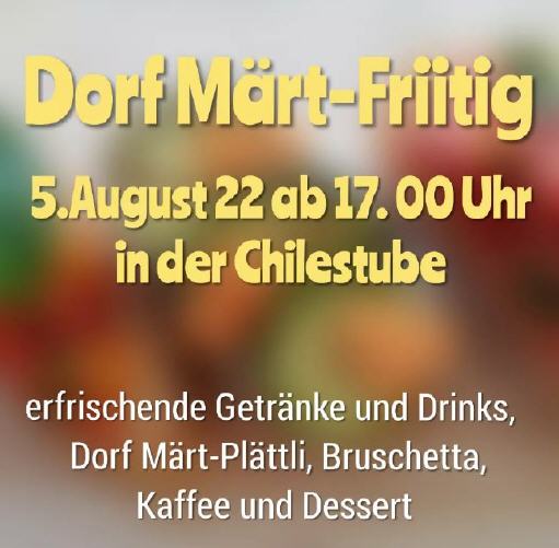 Bis bald am "Dorf Märt-Fritig" in der Chilestube am Freitag, 15. Juli 2022!