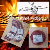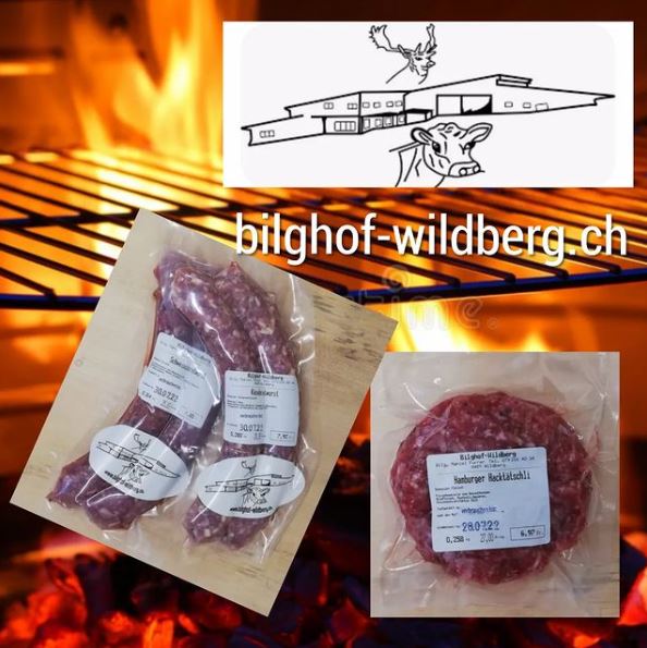 Eben erst produziert und schon bei uns im Dorf Märt erhältlich, die super-feinen Schweins- und Käseschweinsbratwürste und die Hamburger vom Bilghof.