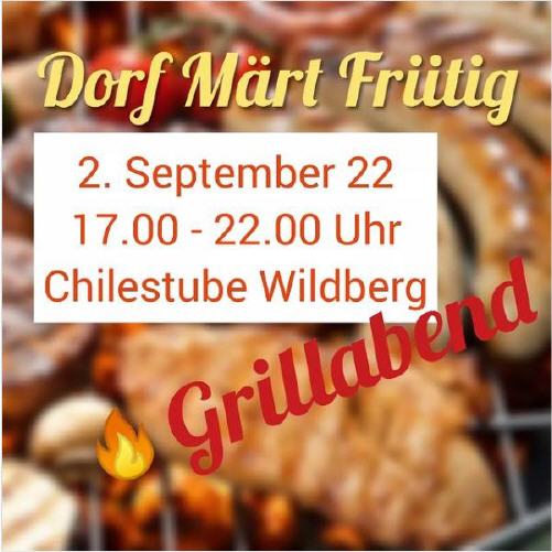 Am Freitag organisiert das Dorf Märt-Team einen Grillabend in der Chilestube in Wildberg. Es gibt Fleischiges und Vegi vom Grill, dazu einen feinen gemischten Salat, hausgemachten Dessert und feine Drinks.