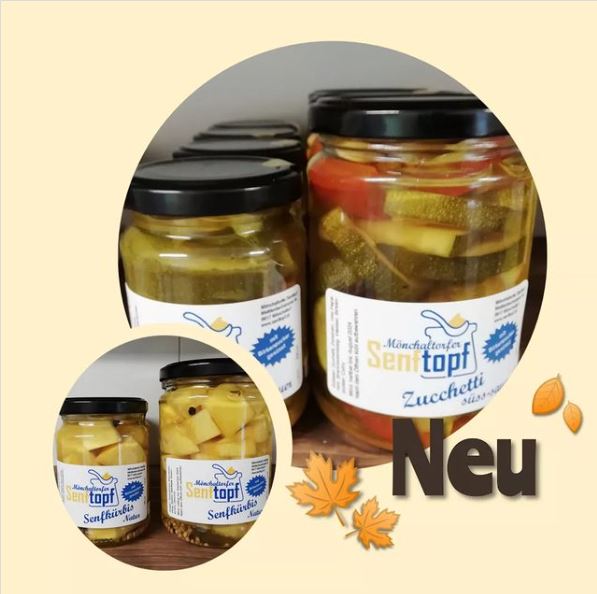 Passend zum Raclette von der Käserei Camenzind haben wir neu eingelegte Zucchetti und Kürbisse vom Mönchaltorfer Senftopf.