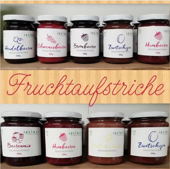Das Regal mit den feinen Fruchtaufstrichen von der Stiftung zur Palme in Pfäffikon ist frisch aufgefüllt mit vielen feinen Sorten