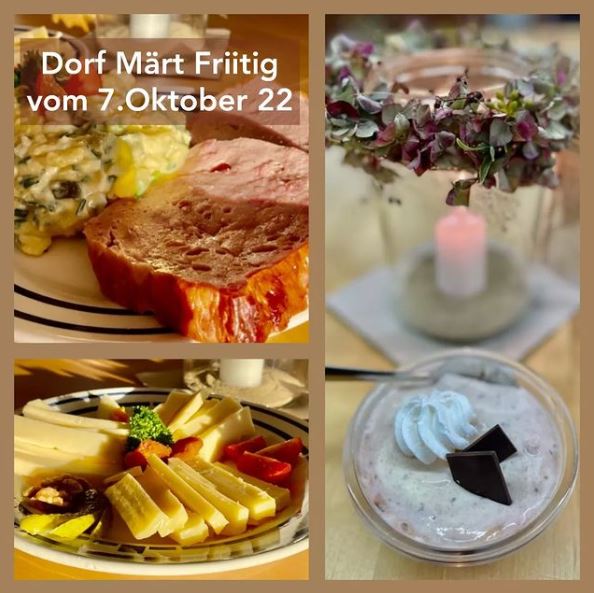 Am Freitag ist es bereits wieder soweit, wir laden ein zu einem gemütlichen Abend in der "Chilestube" (neben der Käsi) und verwöhnen mit Köstlichkeiten aus unserem Dorf Märt. Bis bald, wir freuen uns!