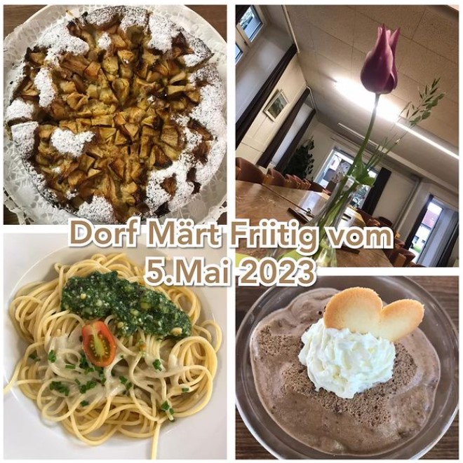 Wir möchten weiterhin mit unseren Dorf Märt Freitagen einen Dorftreffpunkt anbieten für gemütliches Zusammensein und einem feinen Nachtessen. Da unser Dorf kein Restaurant mehr hat sind diese Abende eine Möglichkeit, Leute zu treffen und sich auszutauschen.