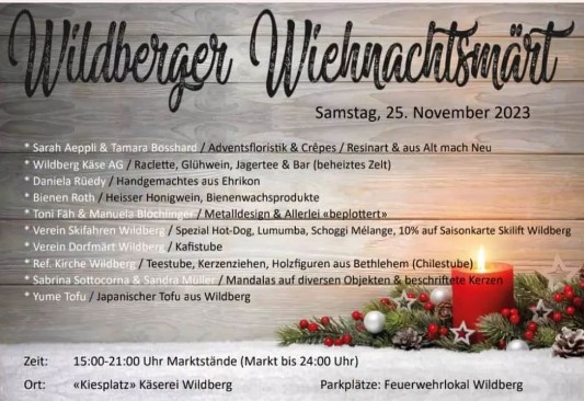 Am nächsten Samstag, 25.11.23 um 15.00 Uhr startet der Wildberger Wiehnachtsmärt und wir sind wieder dabei mit einer Kaffeestube an der Wärme.