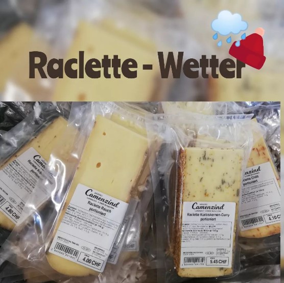 7 Sorten Raclettekäse sind heute im Laden aufgefüllt worden. Da hat es sicher für jeden etwas dabei. Das Wetter passt... Also steht einem gemütlichen Essen nichts mehr im Weg.