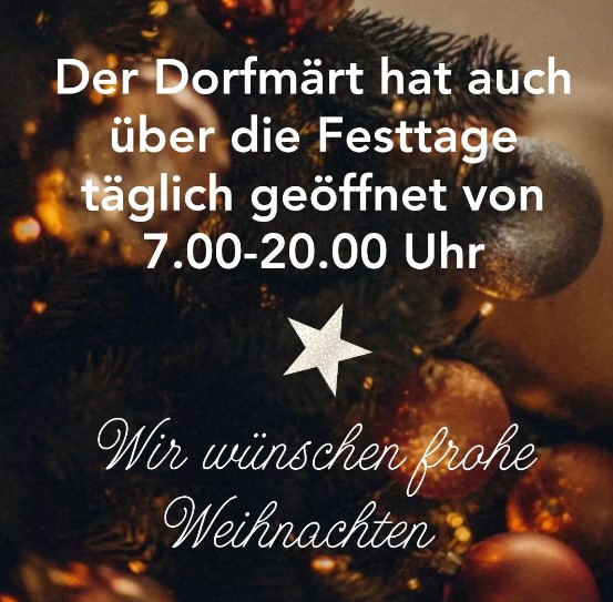 Wir haben auch über die Festtage täglich geöffnet von 7.00-20.00 Uhr.